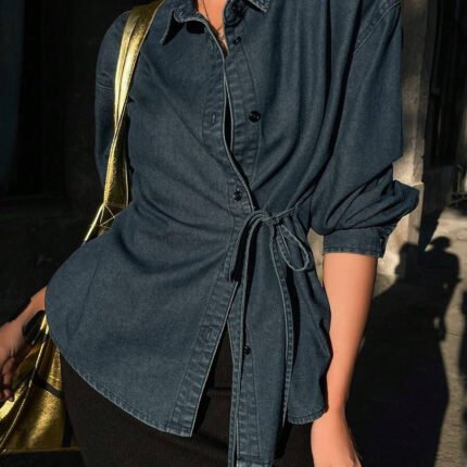 قميص جينز مع ربطة أمامية