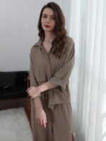 - إغلاق البلوزة عبر اللف أو الأزرار يجعلها سهلة التحكم في التغطية.