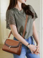 حقيبة نسائية جلدية مزودة بشريطين ثابتين، توفر ثباتًا مثاليًا للحقيبة أثناء الحمل، مما يجعلها مريحة وآمنة على الكتف طوال الوقت. كما تحتوي الحقيبة على جيوب داخلية منظمة تساعدكِ في ترتيب هاتفكِ ومفاتيحكِ بسهولة وبشكل مرتب.