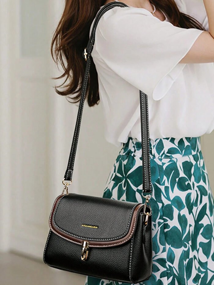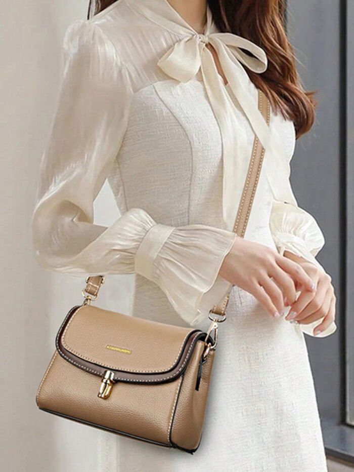 حقيبة نسائية جلدية مزودة بشريطين ثابتين، توفر ثباتًا مثاليًا للحقيبة أثناء الحمل، مما يجعلها مريحة وآمنة على الكتف طوال الوقت. كما تحتوي الحقيبة على جيوب داخلية منظمة تساعدكِ في ترتيب هاتفكِ ومفاتيحكِ بسهولة وبشكل مرتب.