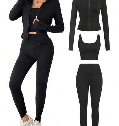 مجموعة رياضية نسائية مكونة من ثلاث قطع